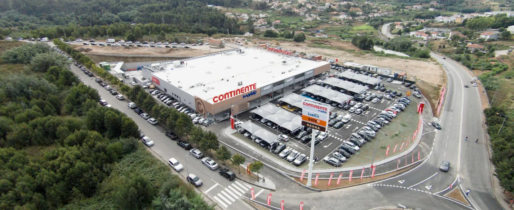 Esta loja Continente disponibiliza um parque de estacionamento a todos os seus clientes com lugares destinados a pessoas com mobilidade condicionada e lugares reservados para famílias.