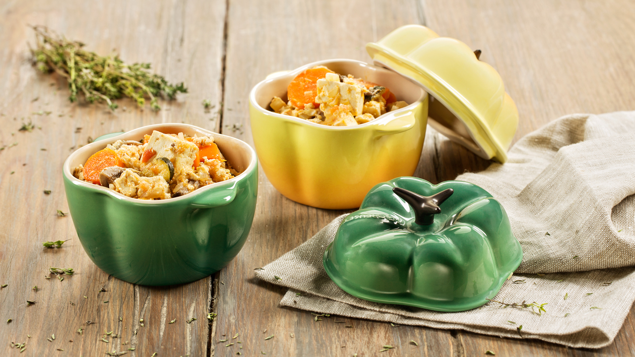Junte a bebida vegetal e mexa constantemente até levantar fervura e engrossar. Tempere com pimenta e noz-moscada.
