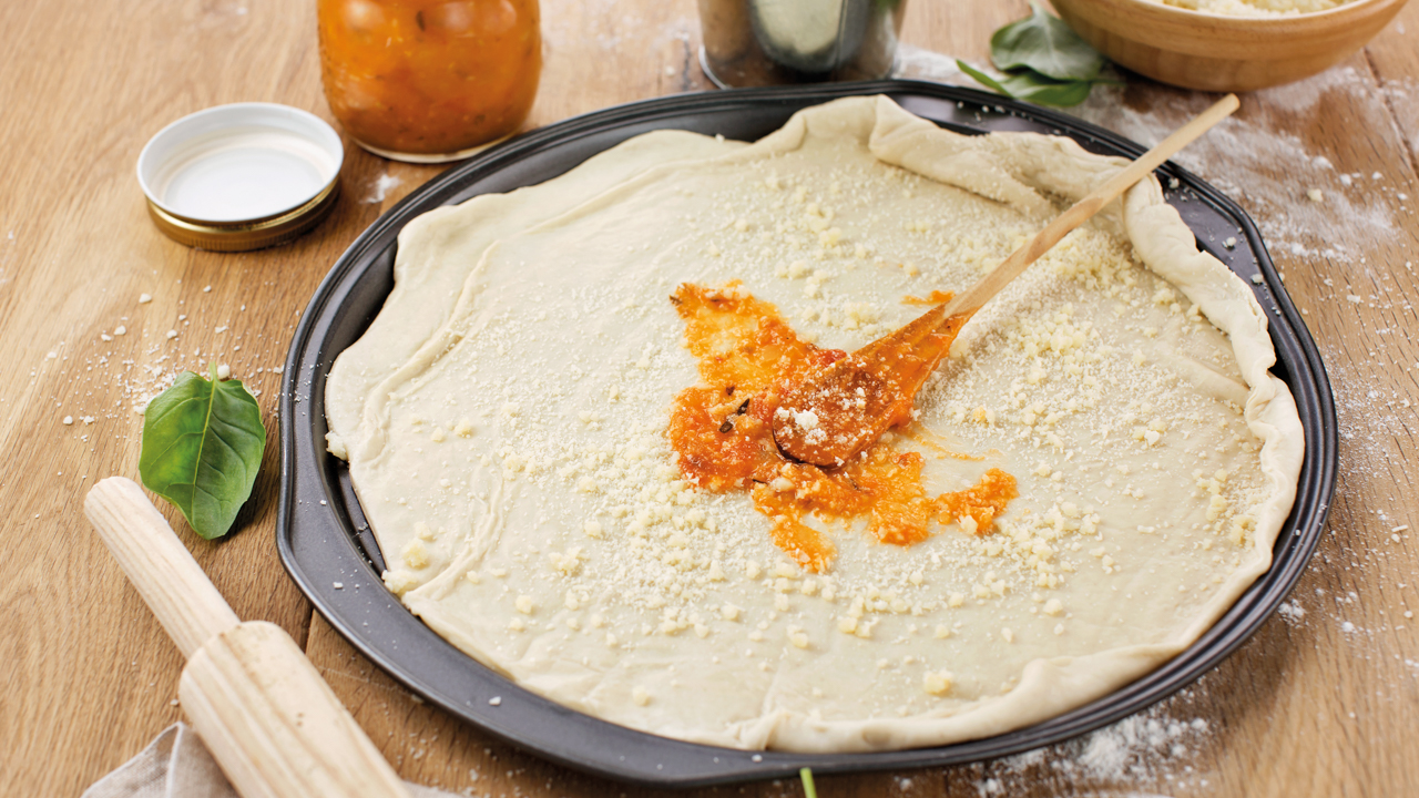 Fazer uma bola com a massa, tapar com um pano e deixar repousar durante 30 minutos.