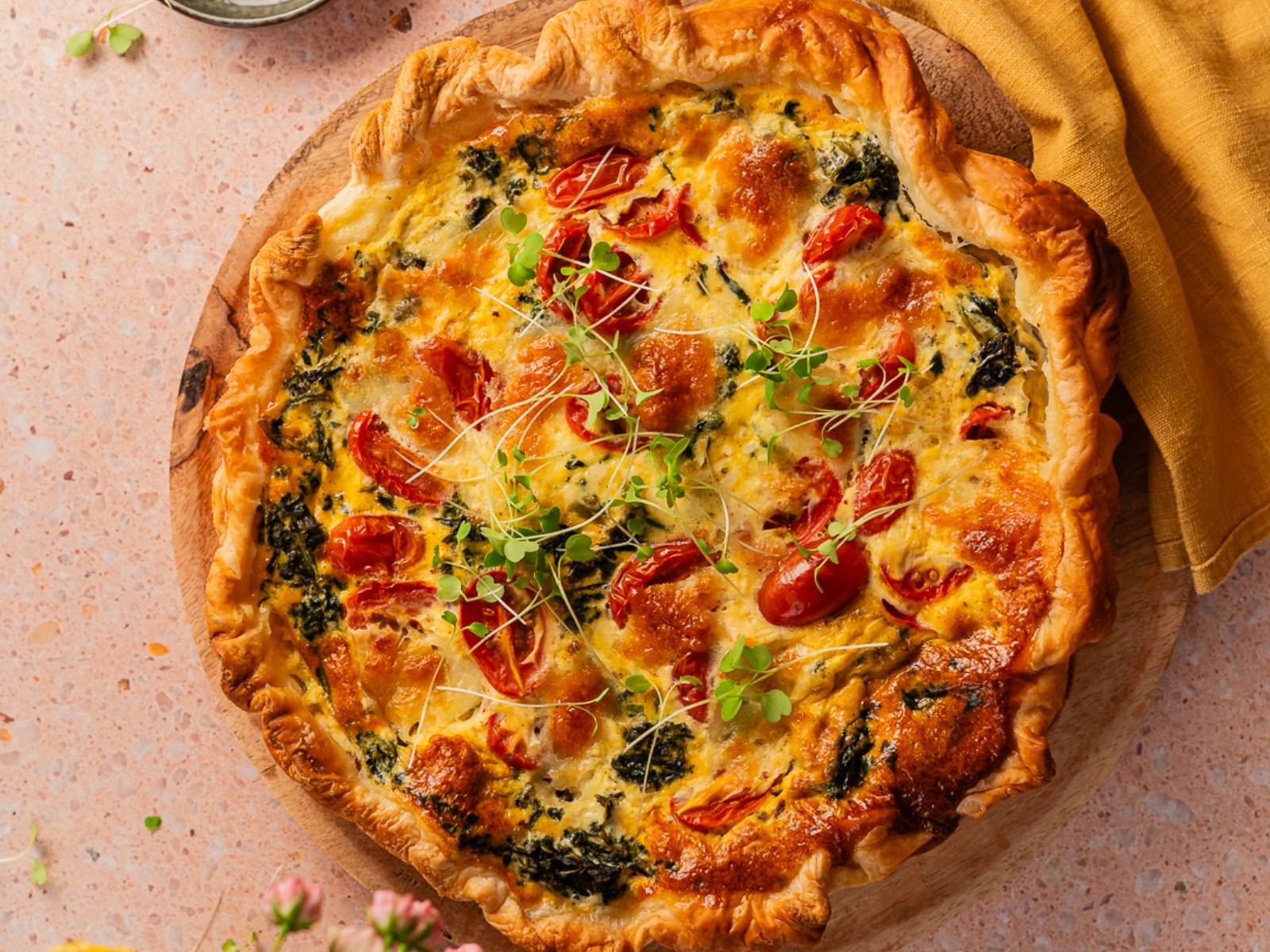 Quiche de Mozaarella, Espinafres e Tomate