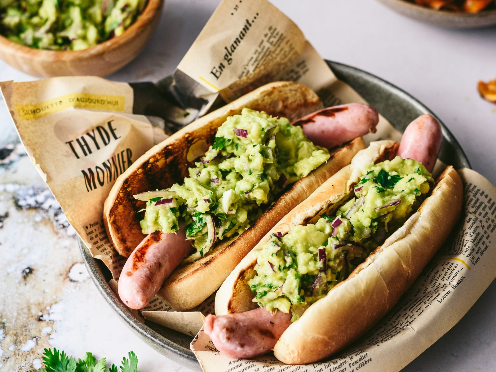 Numa frigideira bem quente, grelhe os secretos temperados com sal, transfira-os para uma tábua e corte-os apenas em tiras, envolva os secretos no molho de coentros e alho. Reserve.
