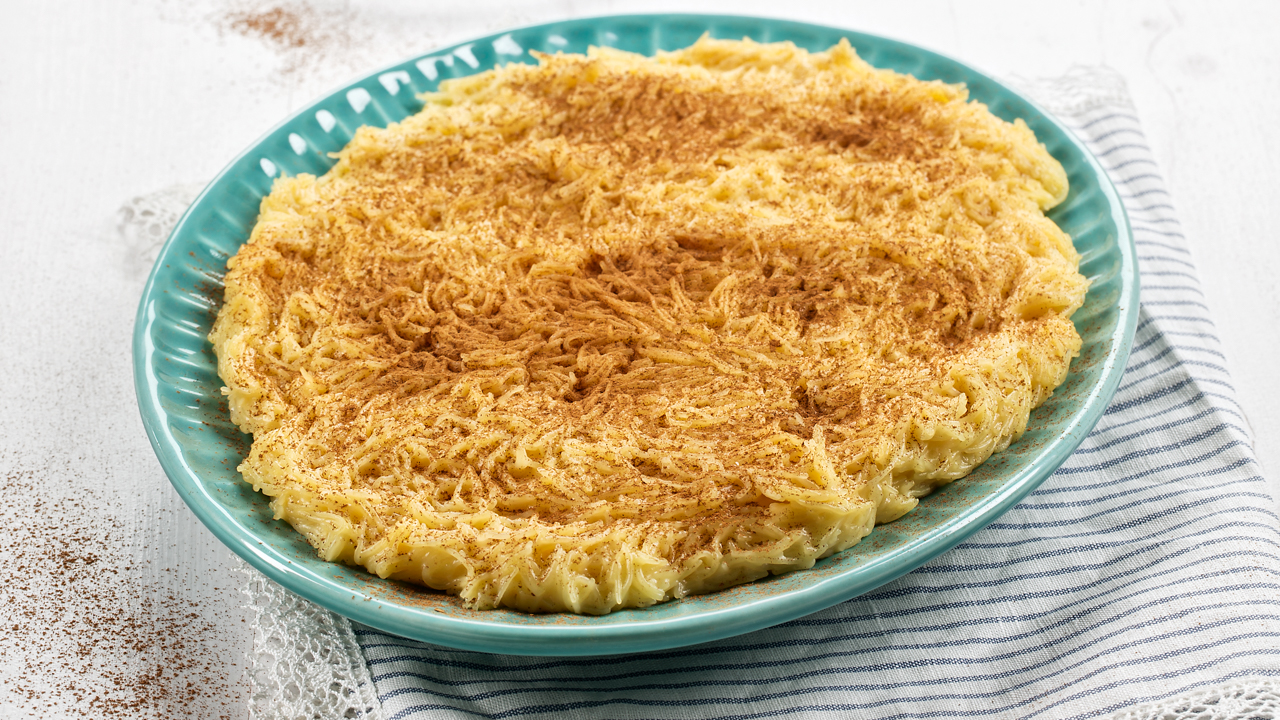 Retire o pau de canela e a casca de limão. Disponha a aletria numa travessa e polvilhe com canela em pó a gosto.