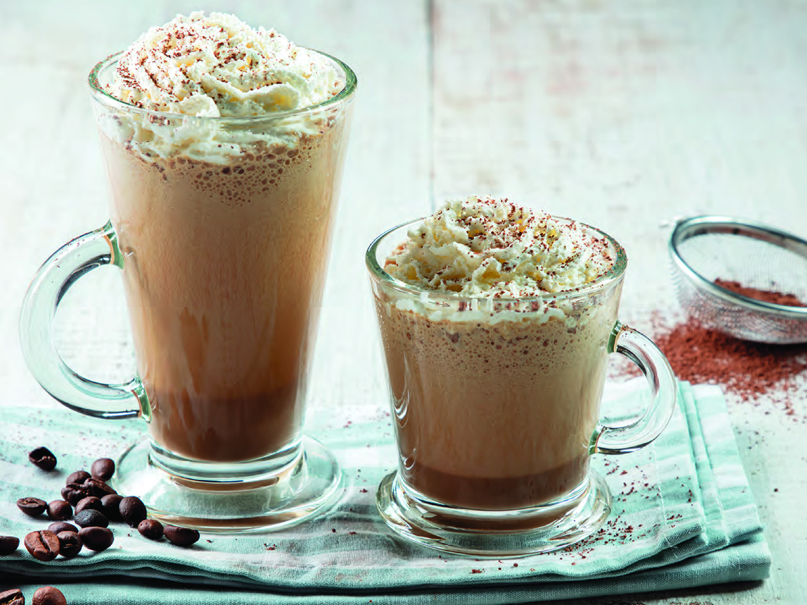 Retire do copo e distribua por 4 taças de champanhe. Polvilhe com o cacau em pó e sirva.